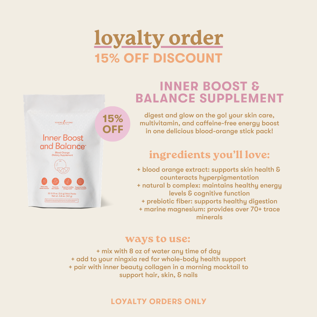Get 15% off INNER BOOST & BALANCE when you add it to your Loyalty Order!